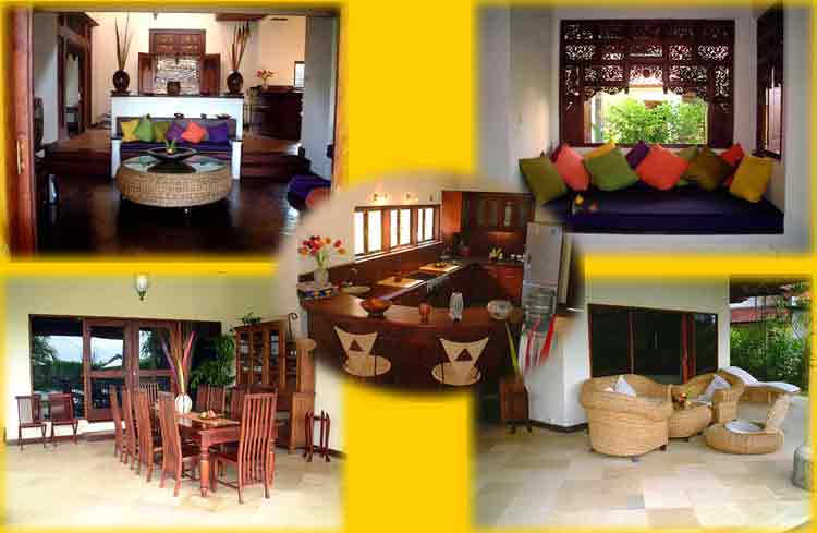 Wohnbereich Der Wohnbereich befindet sich sowohl im Haus als auch auf der Terrasse. Im Inneren gibt es neben dem Wohnzimmer mit grossem Kuschelsofa ein Esszimmer und eine voll ausgestattete Küche im europäischen Stil. Auf der Terrasse gibt es ein Couchset, einen Esstisch für 10 Personen und eine Komode mit Geschirr. Weitere Ausstattung des Wohnbereiches: